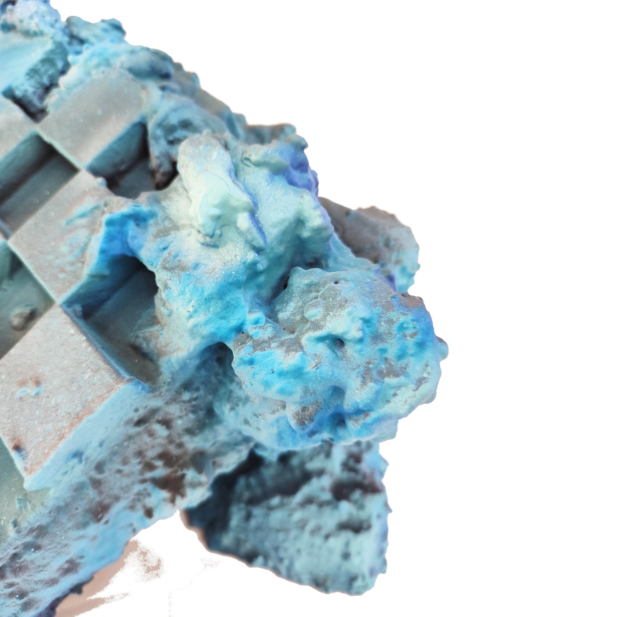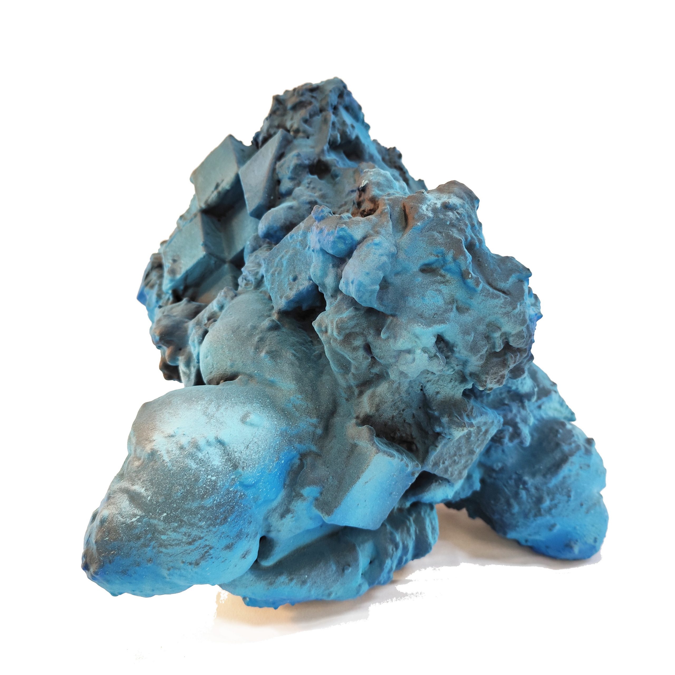 Pluto es la tercera de una serie escultórica que se sumerge en la ficción de una arqueología cósmica, donde cada pieza encarna no solo un cuerpo celeste, sino una atmósfera y un estado de materia radicalmente distinto. Inspirada en el planeta enano más lejano del sistema solar, Pluto se presenta como una reliquia atrapada en el tiempo, erosionada por siglos de temperaturas bajo cero, como si hubiera sido extraída de una superficie glacial o de una caverna sellada por el hielo interestelar.