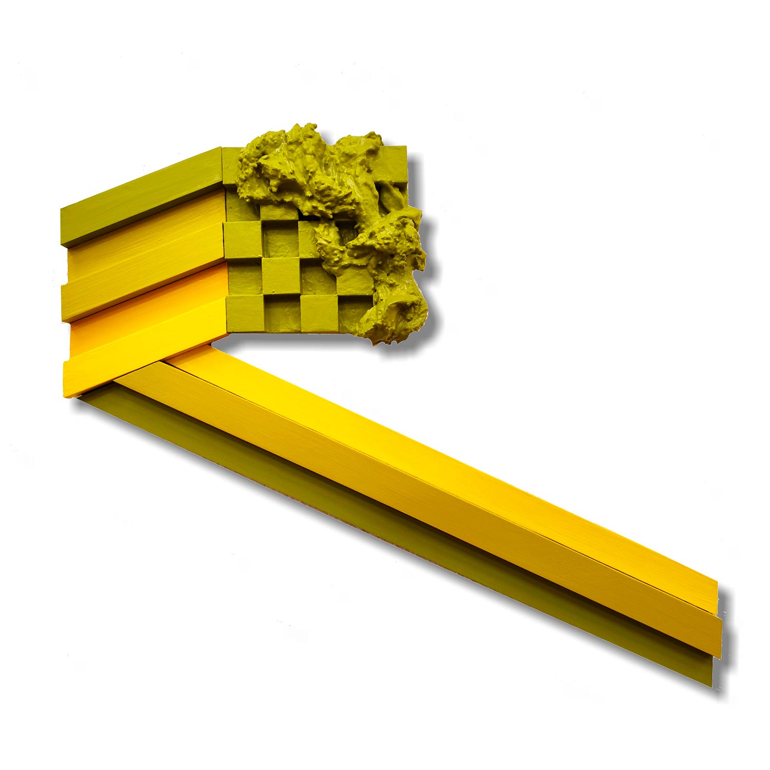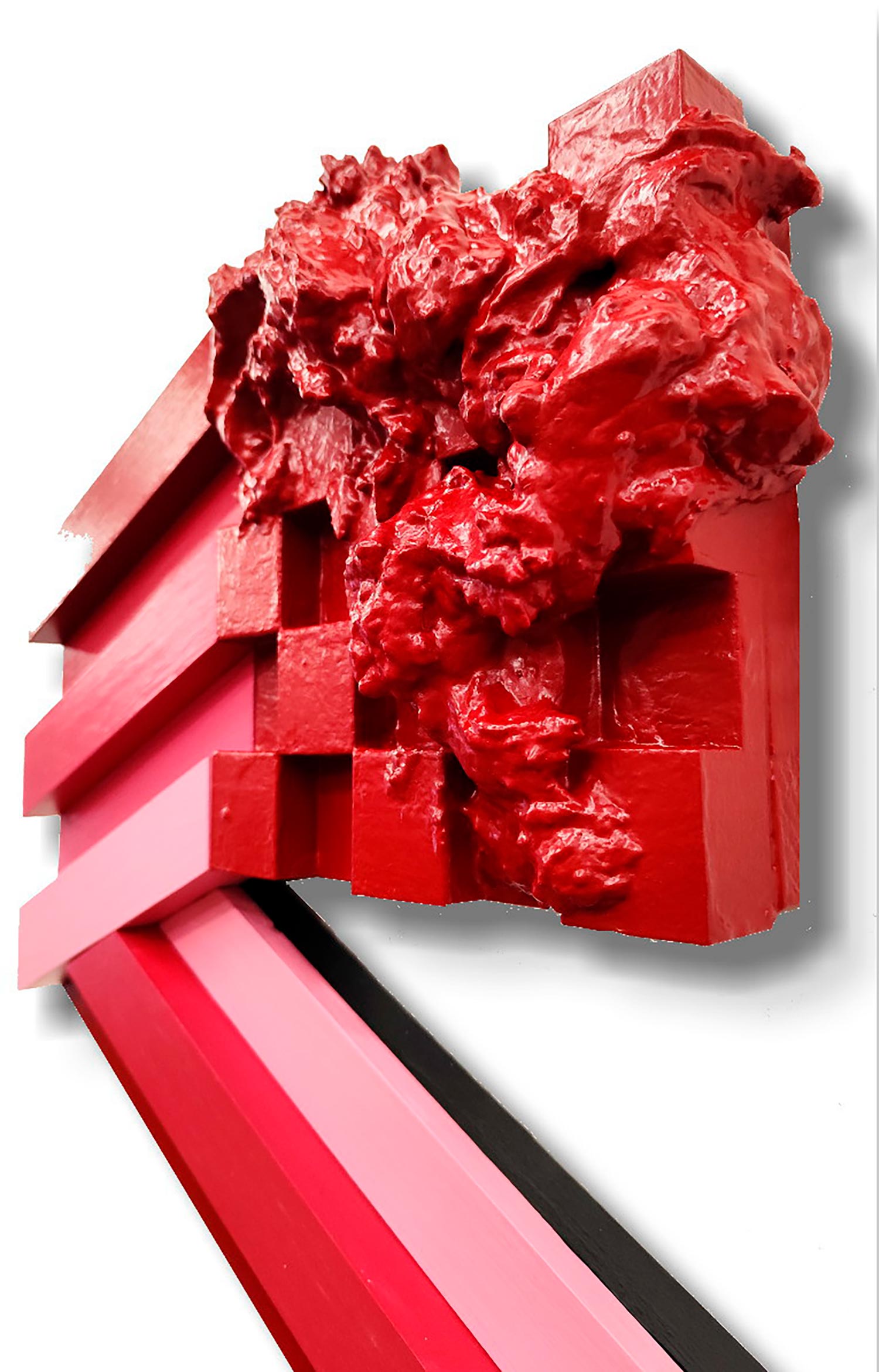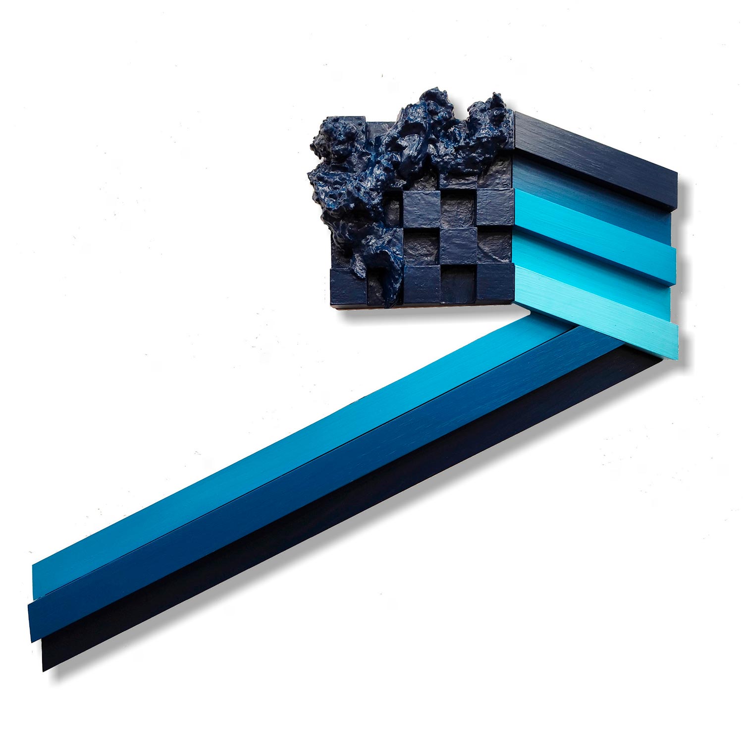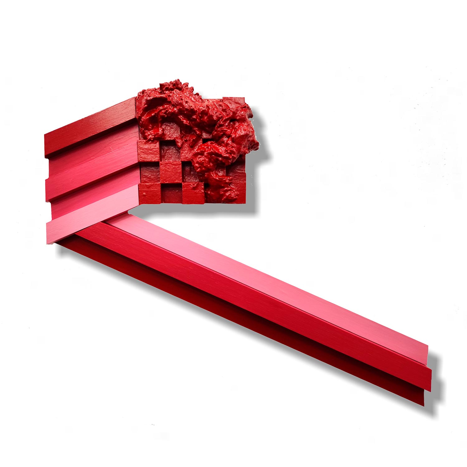 Creada a partir de bloques y listones de madera policromados con pintura Acrílica sobre tabla con bastidor, que en su pieza central lleva aplicada una pincelada de pintura matérica de gran densidad en contraste al resto de elementos.