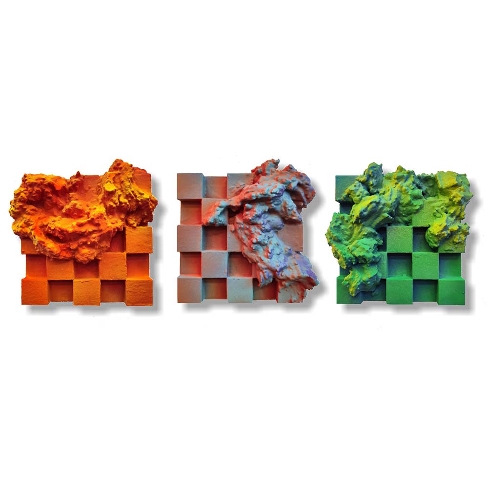 Musgos  son 3 piezas independientes y originales de Eva Menezz realizadas en 2024, de su nueva serie de medio formato Pictórico/Escultórica Abstracta denominada “FUSIÓN”.